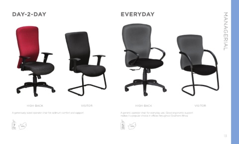 A generously sized operator chair for optimum comfort and support.           A generic operator chair for everyday use. Good ergonomic support