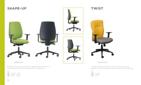 The Shape-Up operator chair offers a height-adjustable backrest for This Twist operator chair offers super-comfortable ergonomic