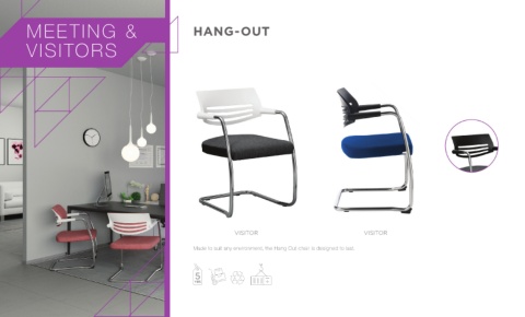 MEETING & HANG-OUT VISITORS VISITOR VISITOR Made to suit any environment, the Hang Out chair is designed to last. 26
