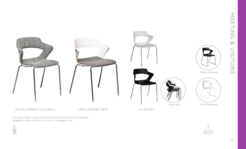 Available in black or white, as a swivel or a 4-legged chair.