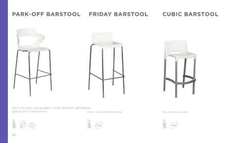 PARK-OFF BARSTOOL FRIDAY BARSTOOL CUBIC BARSTOOL Our funky chair now available in a bar stool with upholstered options with chrome frame. Smooth poly-shell chrome frame. Poly-shell with alu-frame. 42