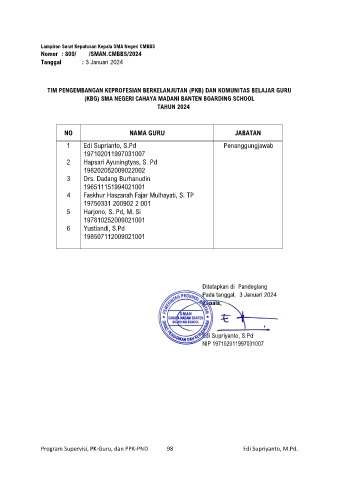 Lampiran Surat Keputusan Kepala SMA Negeri CMBBS