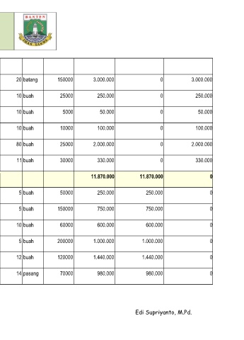 159. 05.08. 02. Pengadaan Peralatan Sekolah diluar diluar komponen 11.870.000 11.870.000 0