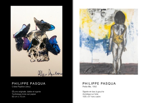 P H I L I P P E P A S Q U A P H I L I P P E PA S Q UA Crâne Papillon (bleu) Petite fille, 1992 Œuvre originale, datée et signée Signée en bas à gauche Technique mixte sur papier Acrylique sur toile 80 cm x 70 cm 108 x 97 hors cadre