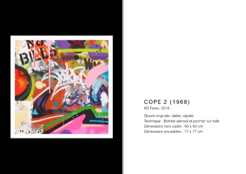 C O P E 2 ( 1 9 6 8 ) KD Famo, 2016 Œuvre originale, datée, signée Technique : Bombe aérosol et pochoir sur toile Dimensions hors cadre : 60 x 60 cm Dimensions encadrées : 77 x 77 cm