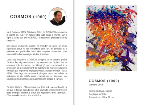 Dans ses créations COSMOS s’inspire de la culture graffiti.