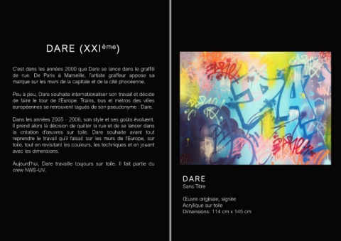 la création d’œuvres sur toile. Dare souhaite avant tout