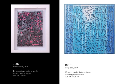 D O K D O K Pink Paradize, 2016 Deep blue, 2016 Œuvre originale, datée et signée Œuvre originale, datée et signée Drawing gum et aérosol 65,5 cm x 51 cm Drawing gum et aérosol 128 cm x 128 cm
