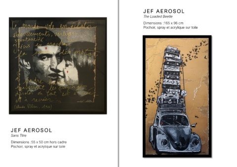 J E F A E R O S O L The Loaded Beetle Dimensions :165 x 96 cm Pochoir, spray et acrylique sur toile J E F A E R O S O L Sans Titre Dimensions :55 x 50 cm hors cadre Pochoir, spray et acrylique sur toile