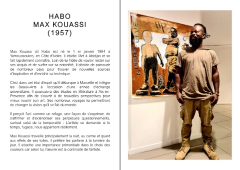 Yamoussoukro, en Côte d’Ivoire. Il étudie l’Art à Abidjan et se