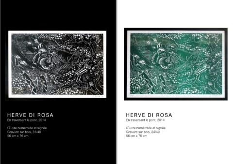 H E R V E D I R O S A H E R V E D I R O S A En traversant le pont, 2014 En traversant le pont, 2014 Œuvre numérotée et signée Œuvre numérotée et signée Gravure sur bois, 31/40 Gravure sur bois, 24/40 56 cm x 76 cm 56 cm x 76 cm