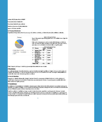 Tabla 1: Reporte de tiempos en minutos, y porcentajes de las actividades mencionadas.