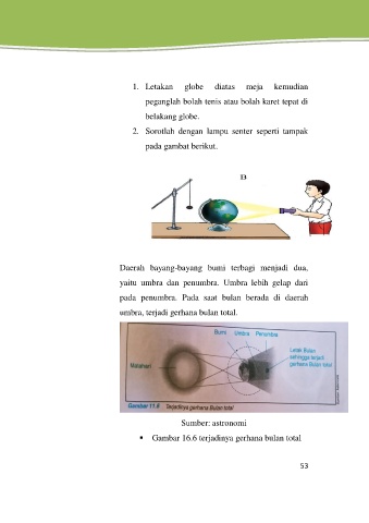 Gambar 16.6 terjadinya gerhana bulan total