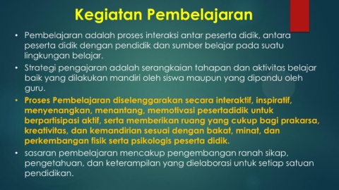• Proses Pembelajaran diselenggarakan secara interaktif, inspiratif,