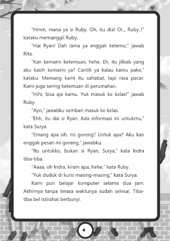“Hihi, bisa aja kamu. Yuk masuk ke kelas!” jawab