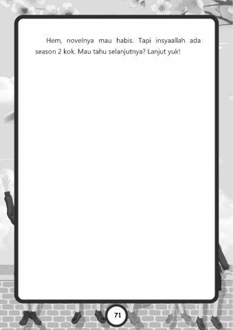 Hem, novelnya mau habis. Tapi insyaallah ada season 2 kok. Mau tahu selanjutnya? Lanjut yuk! 71