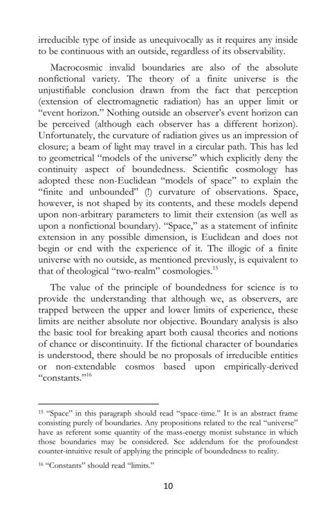consisting purely of boundaries. Any propositions related to the real “universe”