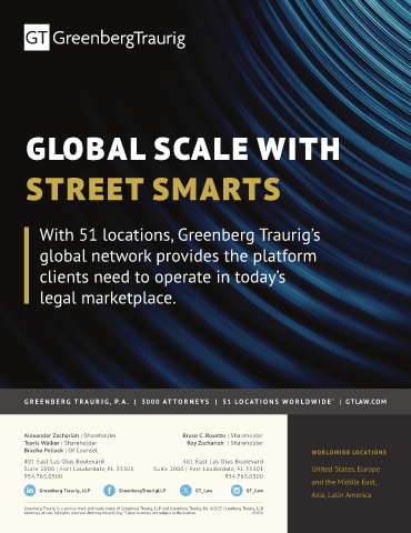GREENBER G TR AURIG , P. A . | 3000 AT T ORNEY S | 51 LOC ATIONS W ORLD WIDE | GTLAW.COM