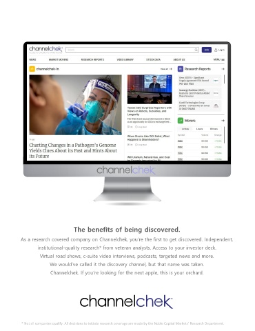 As a research covered company on Channelchek, you’re the first to get discovered. Independent,