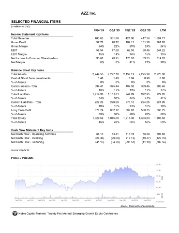 SELECTED FINANCIAL ITEMS AZZ