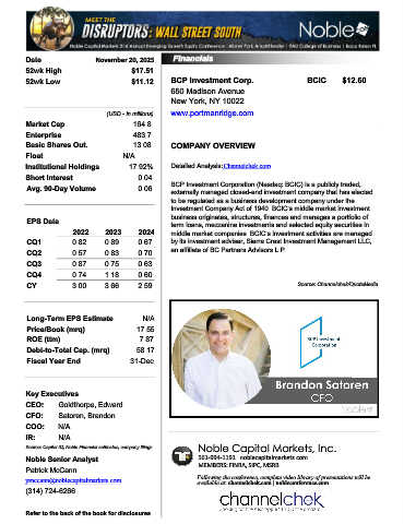 Avg. 90-Day Volume 0.06 BCP Investment Corporation (Nasdaq: BCIC) is a publicly traded,