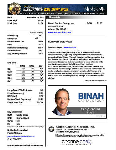 Avg. 90-Day Volume 0.68 BINAH Capital Group (NASDAQ: BCG) is a diversified financial