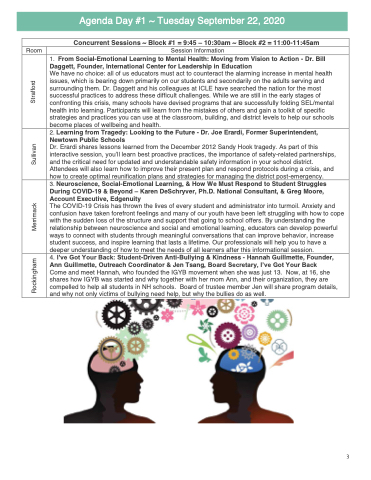 Agenda Day #1 ~ Tuesday September 22, 2020