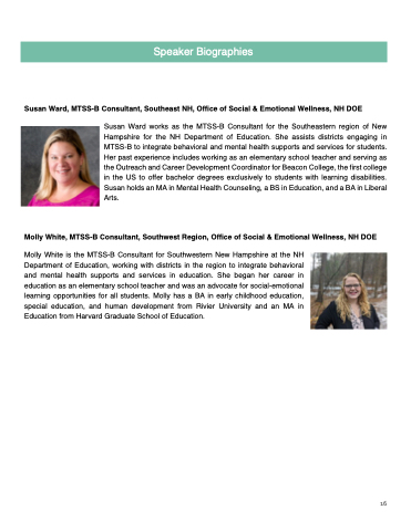 Susan Ward, MTSS-B Consultant, Southeast NH, Office of Social & Emotional Wellness, NH DOE