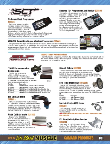 SLP21046 ............1998-99 Camaro, FlowPac Cold-Air Induction operating temperatures for increased performance,