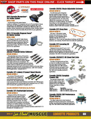 Corvette (C7) Johnny O’Connell Tuned Shocks applications.