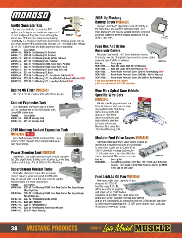 MOR85684 ... 2015-16 Ford Mustang 3.7L, Small Body, Polished NEW! MOR74221*...... Power Brake Reservoir Cover, 2005-Mid ’08 Ford Mustang