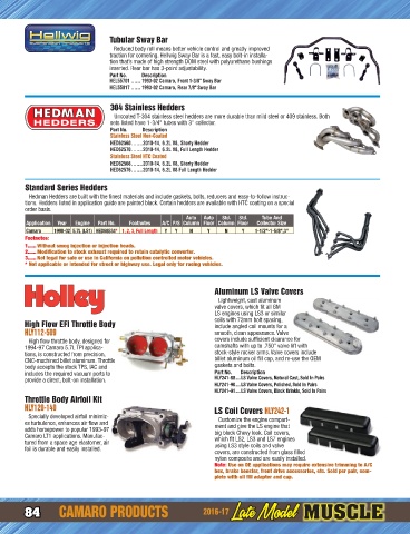 Camaro 1998-02 5.7L (LS1) HED68534* 1, 2, 3, Full Length Y Y N Y N Y 1-1/2"-1-5/8",3"