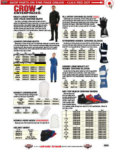 straight leg cuffs and stirrups, back waist gussets, 180° Offered in red, blue or black, gloves meet SFI 3.3/5 speci-