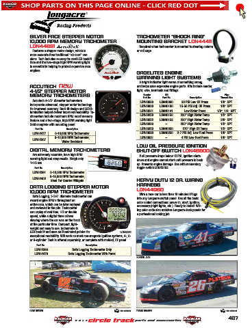 and reviewed in the pits. Tachometer ing color code also matches Longacre dash panels for