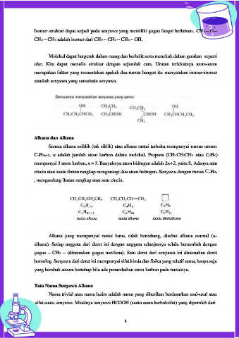 mempunyai 3 atom karbon, n = 3. Banyaknya atom hidrogen adalah 2n+2, yaitu 8. Adanya satu
