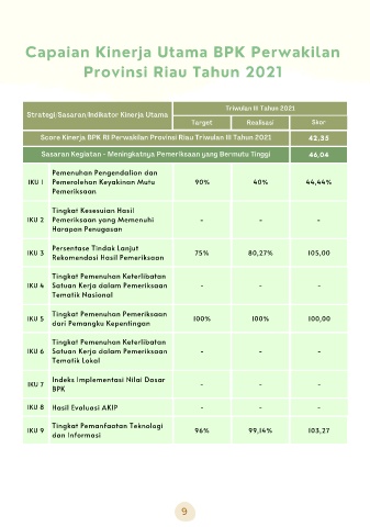 Score Kinerja BPK RI Perwakilan Provinsi Riau Triwulan III Tahun 2021 42,35