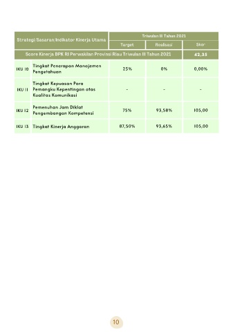 Score Kinerja BPK RI Perwakilan Provinsi Riau Triwulan III Tahun 2021 42,35