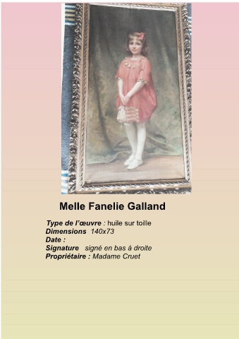 Melle Fanelie Galland Type de l’œuvre : huile sur toille Dimensions 140x73 Date : Signature signé en bas à droite Propriétaire : Madame Cruet