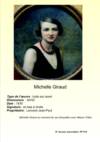 Michelle Giraud Type de l’œuvre : huile sur isorel Dimensions : 64/52 Date : 1930 Signature : en bas à droite Propriétaire : Lancelot Jean-Paul Michelle Giraud au moment de ses fiançailles avec Marius Tollet, N° dossier association PF 010