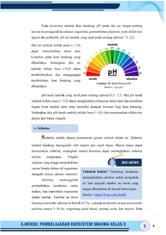 Pada ekosistem tambak ikan bandeng, pH tanah dan air sangat penting