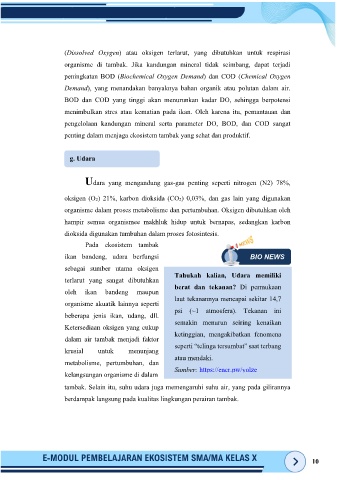 (Dissolved Oxygen) atau oksigen terlarut, yang dibutuhkan untuk respirasi