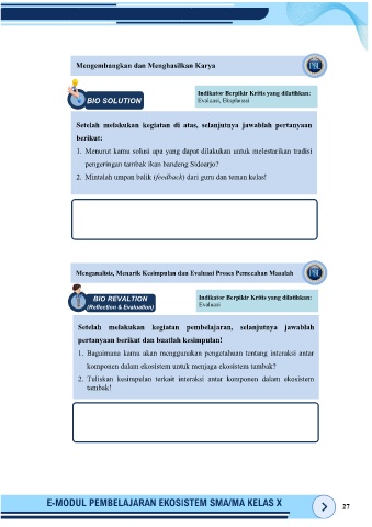BIO REVALTION Indikator Berpikir Kritis yang dilatihkan:
