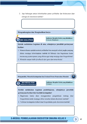 BIO REVALTION Indikator Berpikir Kritis yang dilatihkan: