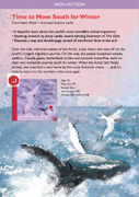 Over the cold, mirrored waters of the Arctic, a tiny Arctic tern sets off on the world’s longest migration journey. On her way, she passes humpback whales, caribou, Canada geese, leatherback turtles and monarch butterflies, each on their own incredible journey south for winter. When the Arctic tern finally arrives, she must find a new home by the rocky Antarctic shore . . . until it’s time to return to the northern skies once again.