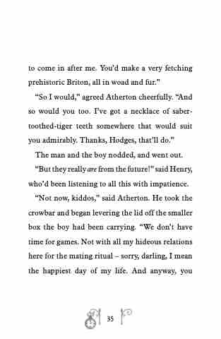 “Not now, kiddos,” said Atherton. He took the crowbar and began levering the lid off the smaller box the boy had been carrying. “We don’t have time for games. Not with all my hideous relations here for the mating ritual – sorry, darling, I mean the happiest day of my life. And anyway, you