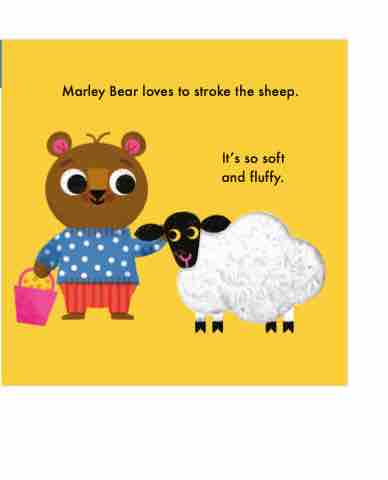 Marley Bear loves to stroke the sheep. It's so soft and fluffy.
