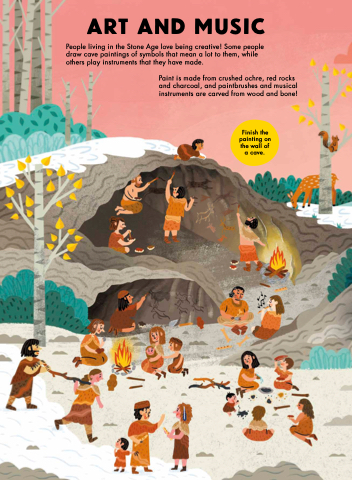 People living in the Stone Age love being creative! Some people draw cave paintings of symbols that mean a lot to them, while others play instruments that they have made.