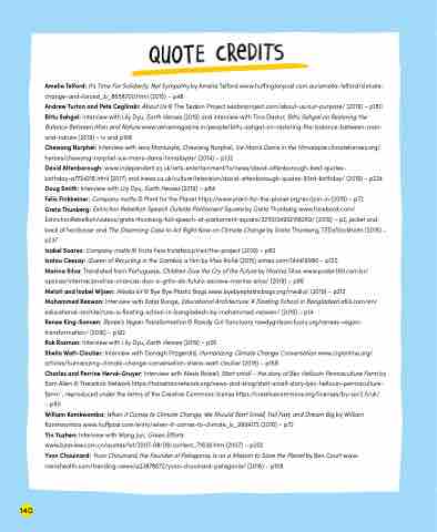David Attenborough: www.independent.co.uk/arts-entertainment/tv/news/david-attenborough-best-quotes- birthday-a7724216.html (2017) and inews.co.uk/culture/television/david-attenborough-quotes-93rd-birthday/ (2019) – p224 Doug Smith: Interview with Lily Dyu, Earth Heroes (2019) – p84