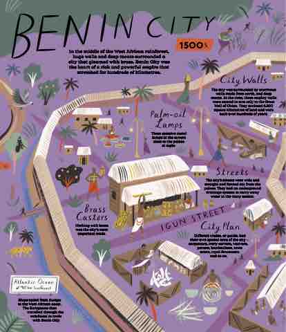 In the middle of the West African rainforest, huge walls and deep moats surrounded a city that gleamed with brass. Benin City was the heart of a rich and powerful empire that stretched for hundreds of kilometres.