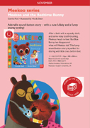 After a bath with a squeaky duck, and some noisy tooth-brushing, Meekoo heads to bed. But Blue Bunny has disappeared . . .